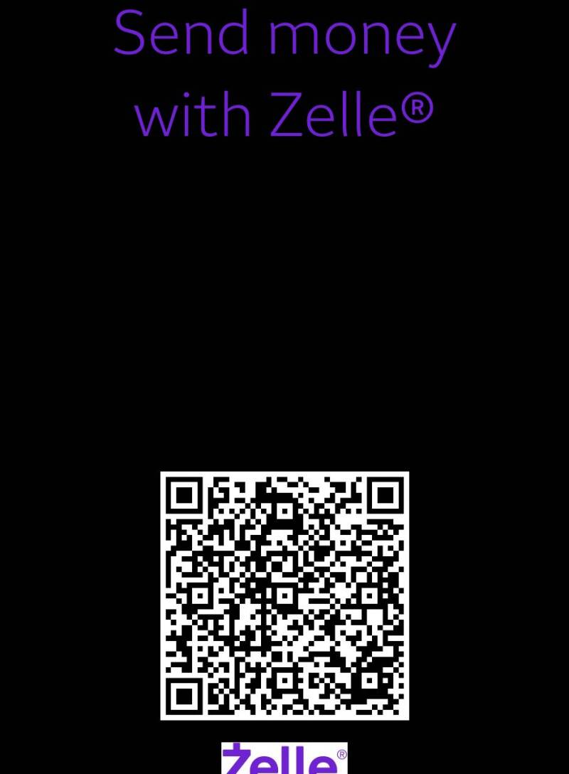 We accept Zelle, Venmo, Paypal and Cashapp.